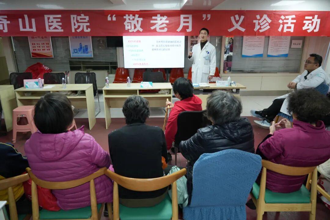 随后,心血管内科专家才英杰围绕冠心病、高血压等老年人常见慢性病的防治进行健康讲座,讲解了疾病成因、早期症状、治疗方法以及预防措施等,重点指导老年人在日常生活中如何通过合理饮食、适度运动、规律作息等方式,预防高血压和冠心病的发生。讲座内容实用易懂,赢得现场老人们的阵阵掌声。