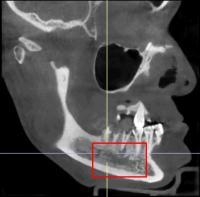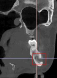医生检查发现,王女士右侧下颌体部区域有明显包块,周围皮肤发红、肿胀,按压时有疼痛感。口腔内检查显示她存在多颗龋坏牙齿和残根,其中几颗叩击痛明显。拍摄的X光片进一步揭示了问题所在:她的下颌骨深处有一片不规则的“阴影区”,而且这个病灶离下颌骨里重要的神经血管非常近,若再拖延,可能会损伤神经,甚至导致面部变形。