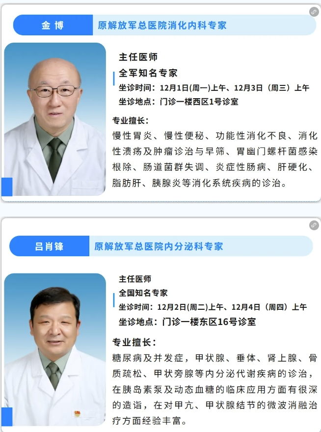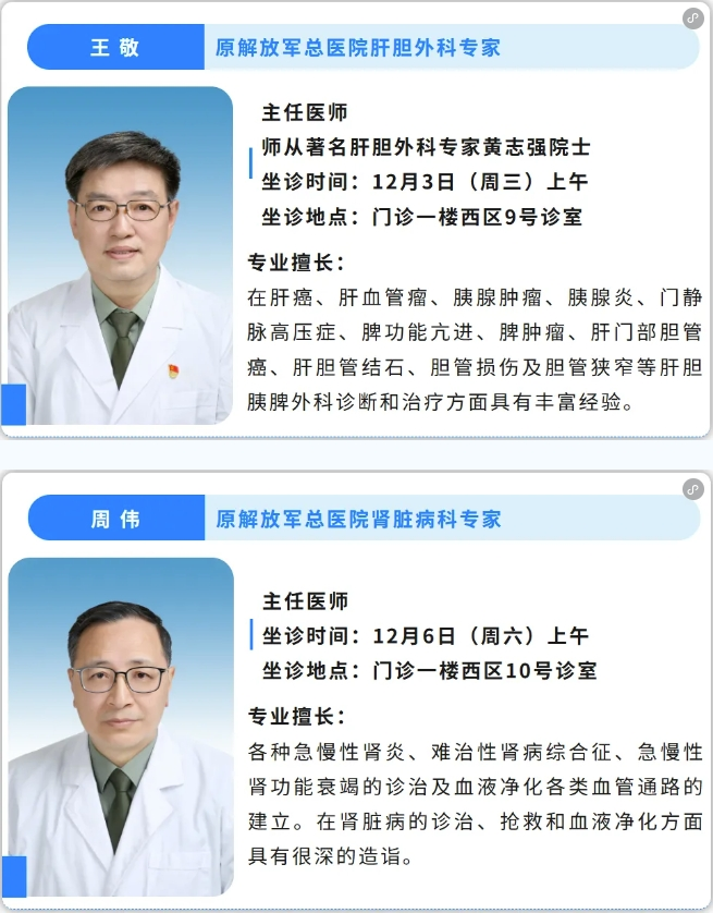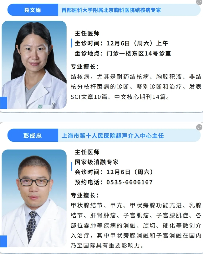 烟台市奇山医院知名专家坐诊信息(12.1-12.7)