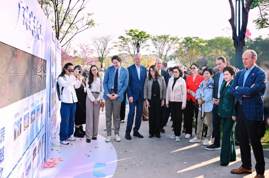 活动现场,安利美好生活社群主理人和广州传统美食商户共同打造的美好生活市集,向市民传播健康、文明、绿色、美好的生活理念。广场“运启繁花”雕塑上镌刻“以花为媒,以水为脉,共筑美好未来”的标语,记录着这片空间的设计理念与愿景,寓意政企合作共创美好未来,携手共赴广阔前程。