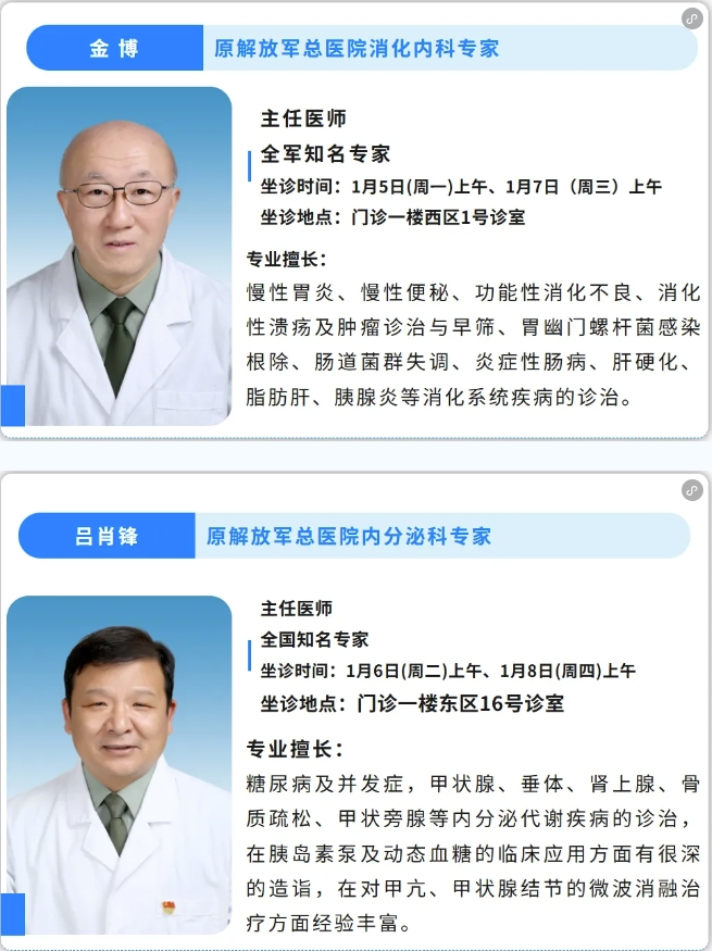 烟台市奇山医院知名专家坐诊信息(1.5-1.11)