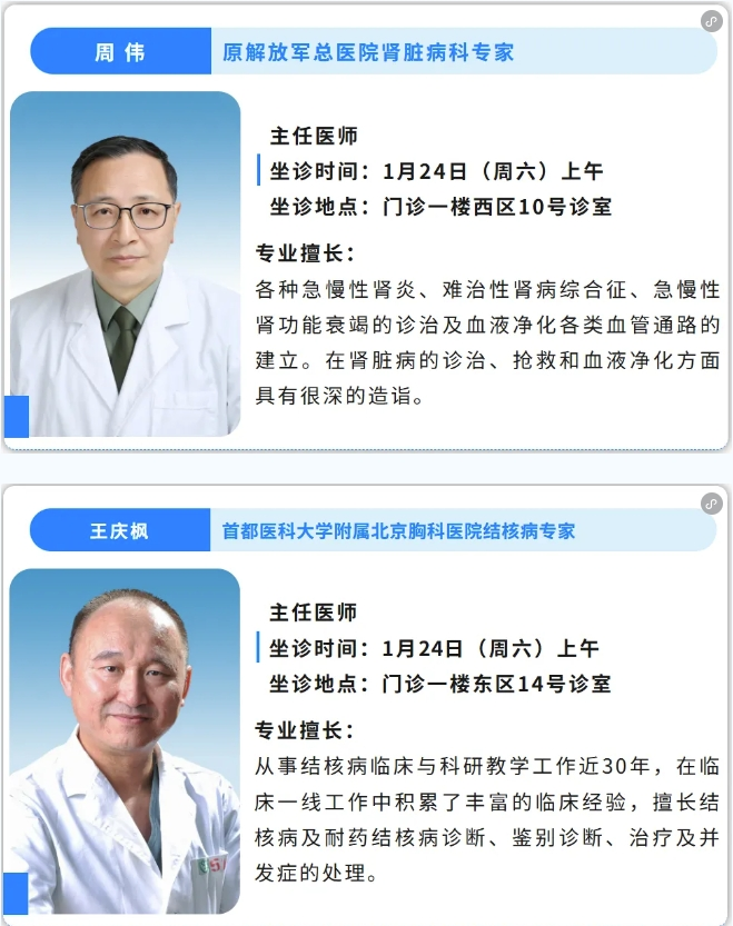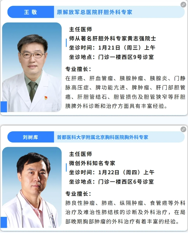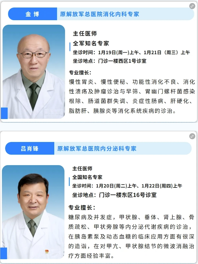 烟台市奇山医院知名专家坐诊信息(1.19-1.25)