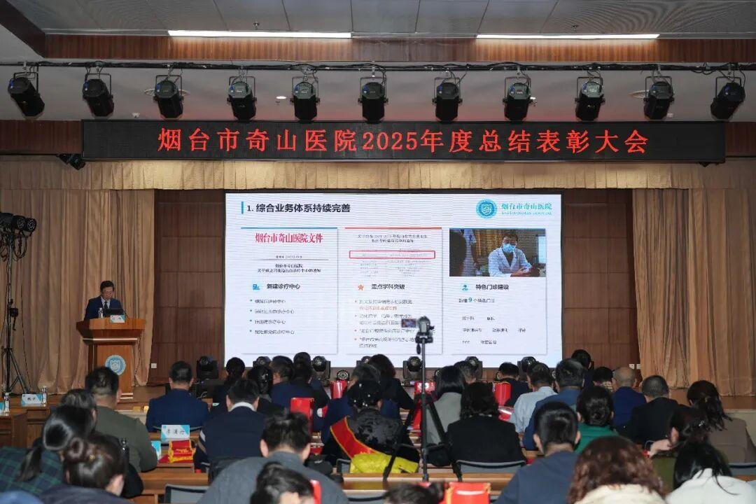 水母网2月4日讯(通讯员 王永梅 曹平)2月4日下午,烟台市奇山医院成功召开2025年度总结表彰大会。大会对2025年在医疗服务、科研创新、医院管理等工作中涌现出的先进集体与个人进行表彰,回顾2025年工作开展成效,部署2026年重点工作。会议由医院院长于红主持,医院领导班子成员、中层干部、职工代表、科室代表及受表彰人员200余人参会。