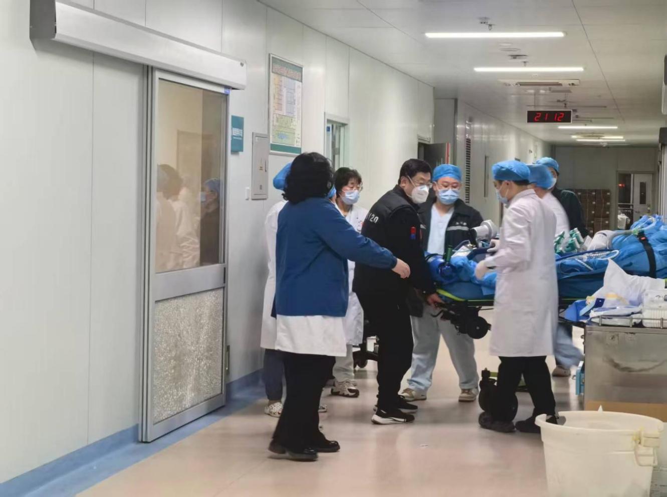 东区重症医学科ECMO转运团队迅速集结,在李小丽主任、李梅凤副主任的带领下,由ECMO核心小组成员李玲、邹会达副主任医师、郭磊主治医师,以及王群主管护师、尚树森护师、慕隆基护士组成的急救团队,携带ECMO设备及各类急救物资,火速驱车奔赴当地医院。整个过程反应迅速、部署有序,从接到求助、会诊研判到团队出征,全程高效衔接,为患者争取了最宝贵的救治时间。