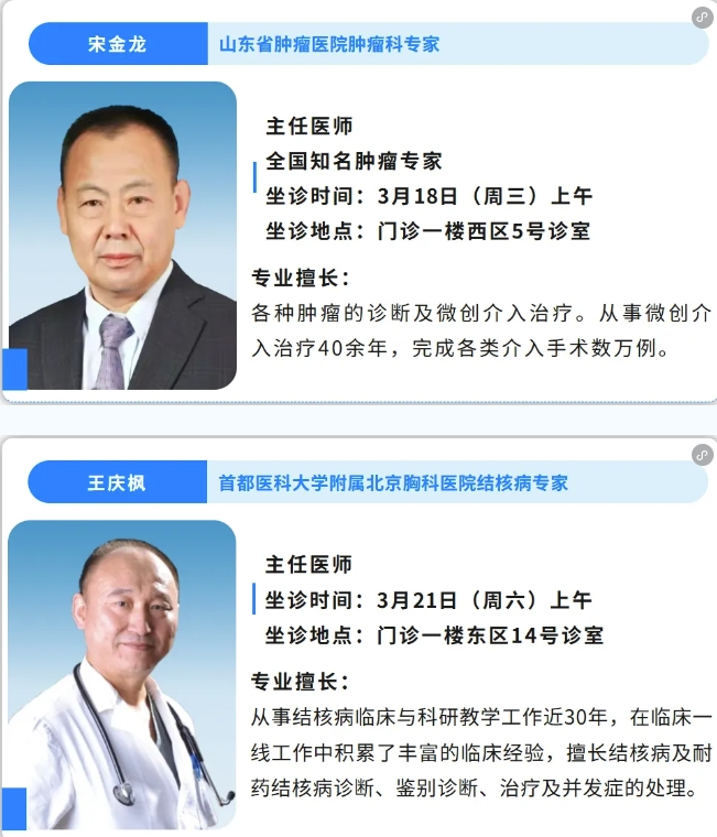 烟台市奇山医院知名专家坐诊信息(3.16-3.22)