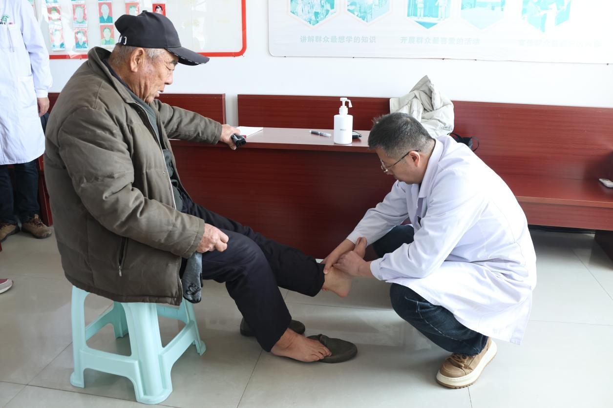 此次诊疗团队涵盖骨科、血管外科、神经外科、甲状腺外科、乳腺外科、肾内科、心内科、消化内科、内分泌科、麻醉科和护理等多个专业,精准对接村民健康需求,为村民提供免费血压、血糖测量、心电图和超声等检查,打造“一站式”健康服务。活动现场,村民们有序就诊,专家们耐心接待每一位前来咨询的村民,细致询问病史、查看检查报告,针对每位村民的咨询问题及身体状况,逐一进行专业诊断,给出个性化诊疗建议和用药指导,并详细解答村民关于疾病防治、日常护理等方面的疑问。