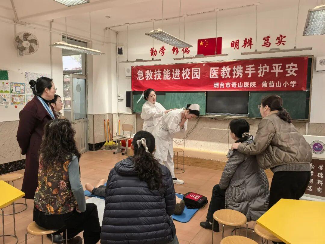 安全无小事,防患于未然。此次医校携手,有效提升了葡萄山小学教职工的应急救护意识和能力,为构建平安、健康、和谐的校园环境提供了坚实有力的保障。下一步,烟台市奇山医院将继续发挥专业优势,深化医教融合协作,持续聚焦校园健康安全需求,以专业的医疗保障和温情的志愿服务,切实为师生的生命安全和身体健康保驾护航。