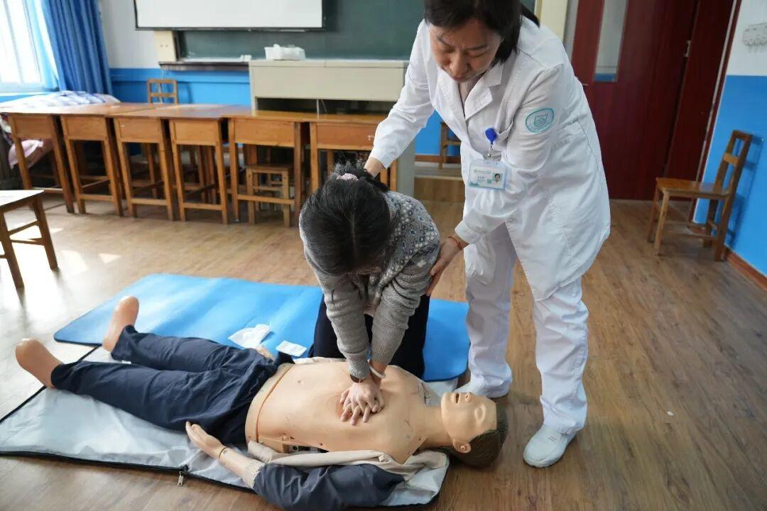 实操环节,参训教师热情高涨,在医院医护团队的“一对一”带教下分组展开演练。医护人员全程严格把关,逐一指导纠正,力求每一位教师熟练掌握急救动作的技术要领,确保在关键时刻能够做到操作规范、处置得当。