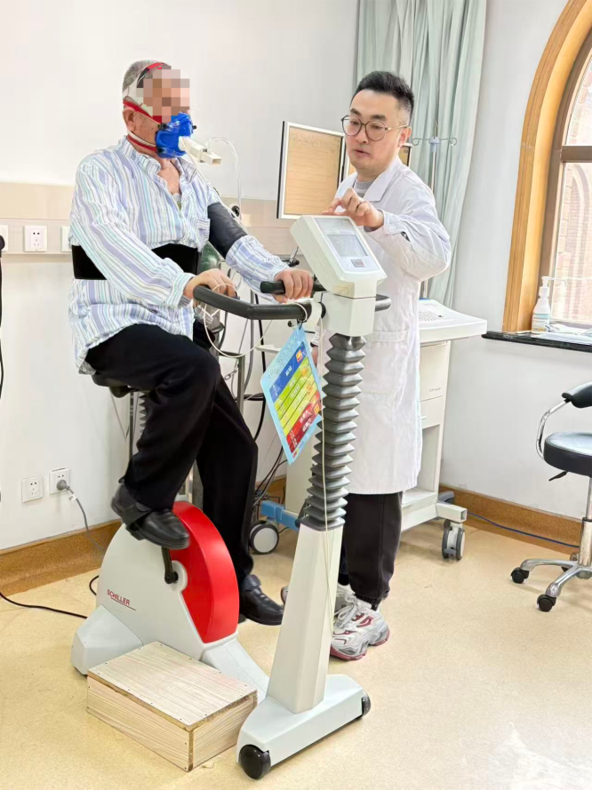 李伟副主任医师在指导患者完成心肺运动试验检查