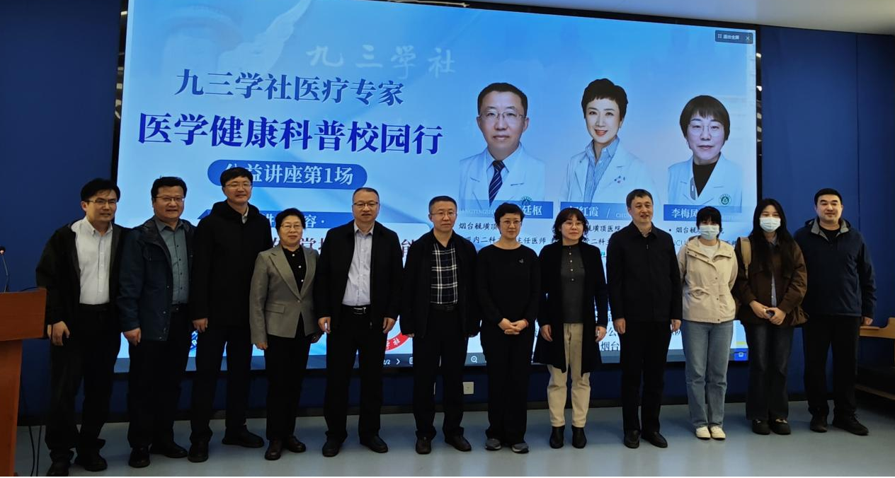 水母网4月9日讯(通讯员 李成修 李添祎)为切实提升高校师生健康防护意识与应急自救能力,筑牢校园健康安全防线,3月29日,烟台毓璜顶医院九三学社社员、心血管二科主任初红霞教授,呼吸内二科主任姜廷枢教授,东区重症医学科副主任李梅凤教授走进烟台大学,联袂开展“警惕心血管意外掌握急救技能”公益讲座,圆满完成“九三学社医学专家校园行”系列公益讲座2026年首场活动。九三学社烟台市委会副主委张桂德,烟台大学党委常委、统战部部长毕朝辉及学校工会相关负责同志出席活动。讲座采用线下授课结合5G+4K广播级线上直播的形式,覆盖烟台大学三元湖主校区、南校区、八角湾校区全体师生,线上线下累计3000余人收听,点赞量近1.2万次,创下驻烟高校医学科普类公益讲座在线传播效果的新高。